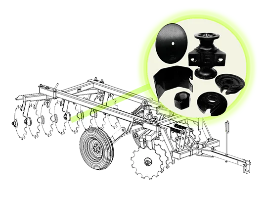 Repuestos para Implementos como Cardán con embrague, Cardán con protección, Cajas multiplicadoras, Chumacera, Discos de Romplow, Disco de arado, Manzana de rastra, Ejes de rastra, cardanes, Cuchillas de 1 hueco y de 2 huecos, Matillos y más